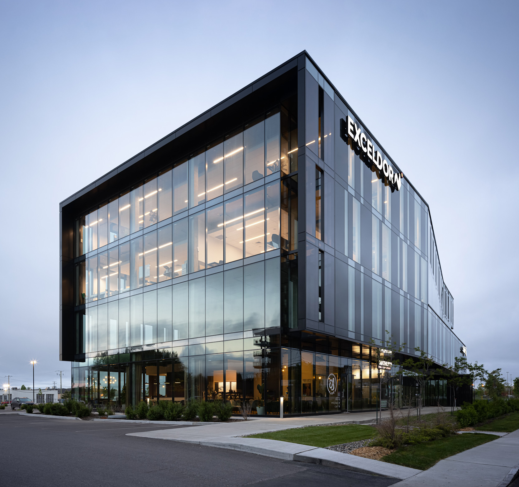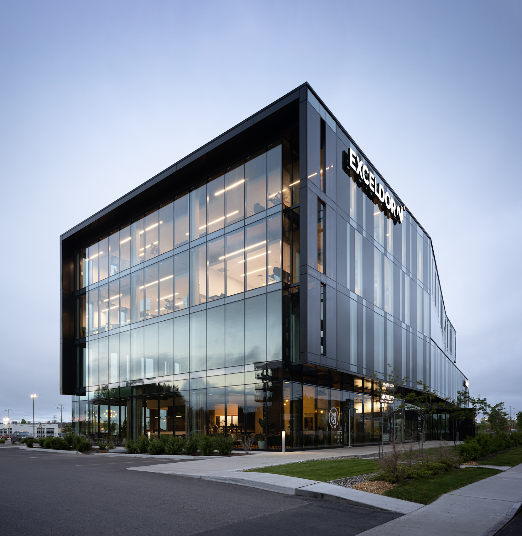 L’édifice du 1500 rue Métivier, situé au cœur du nouveau quartier Miscéo à Lévis, se greffe avec élégance au centre de cet arrondissement en plein essor de Lévis. Haut de quatre étages, il abrite la coopérative Exceldor, qui a choisi ce site de prestige pour y accueillir son siège social, afin de se doter d’un immeuble dont la signature visuelle refléterait l’identité de marque de l’entreprise. L’édifice s’affranchit de l’image traditionnelle des édifices à bureaux et se démarque notamment par sa volumétrie en continuité des édifices de hauteurs et fonctions variées qui l’entourent tout en suivant le léger mouvement angulaire de la voie publique.