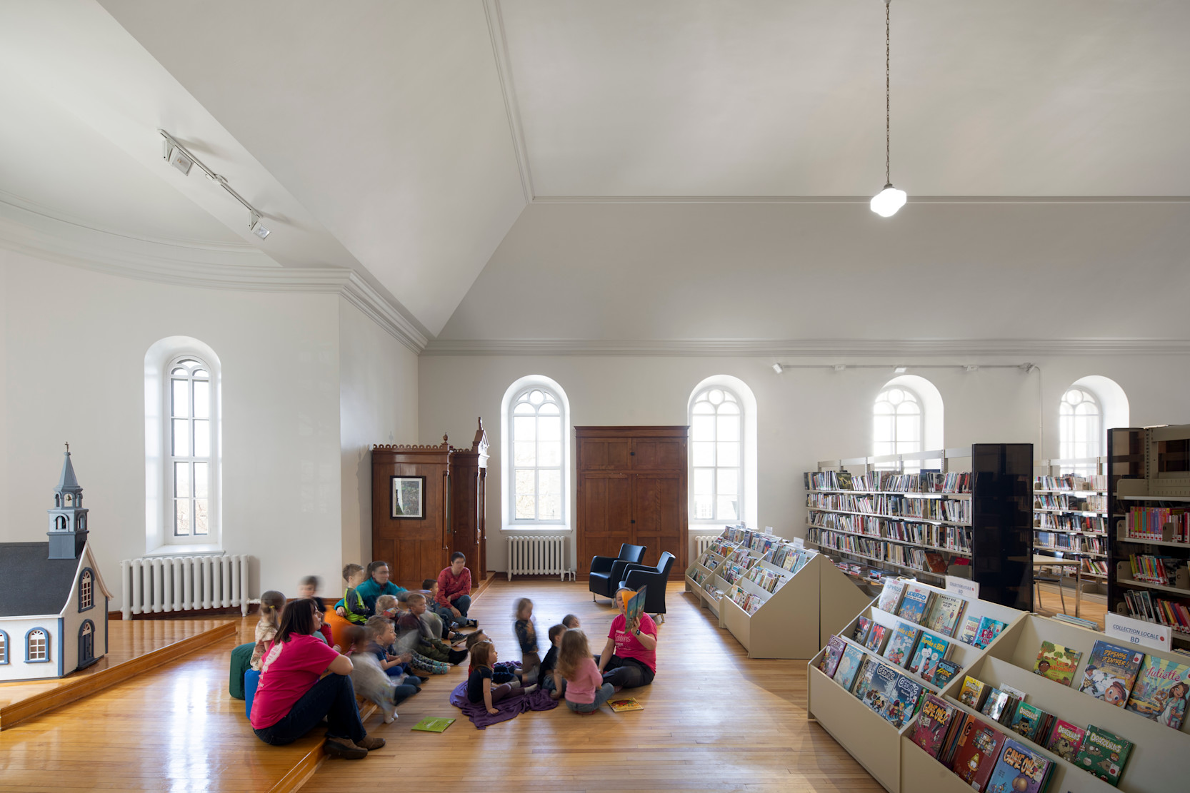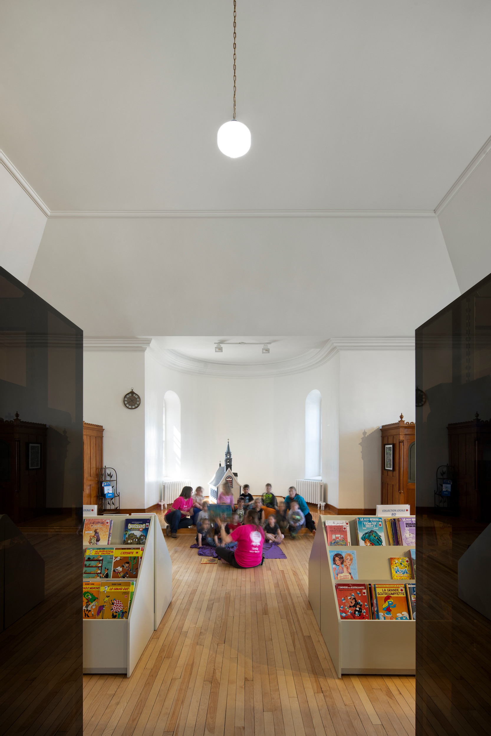 Le réaménagement du parvis devient le premier jalon tangible de réappropriation communautaire: la municipalité démontre qu’elle investit le lieu et dans le lieu. Suivent l’accueil du bureau municipal, le réaménagement de la bibliothèque et la transformation de la nef en salle multifonctionnelle, donnant ainsi un nouvel élan au cœur du village.