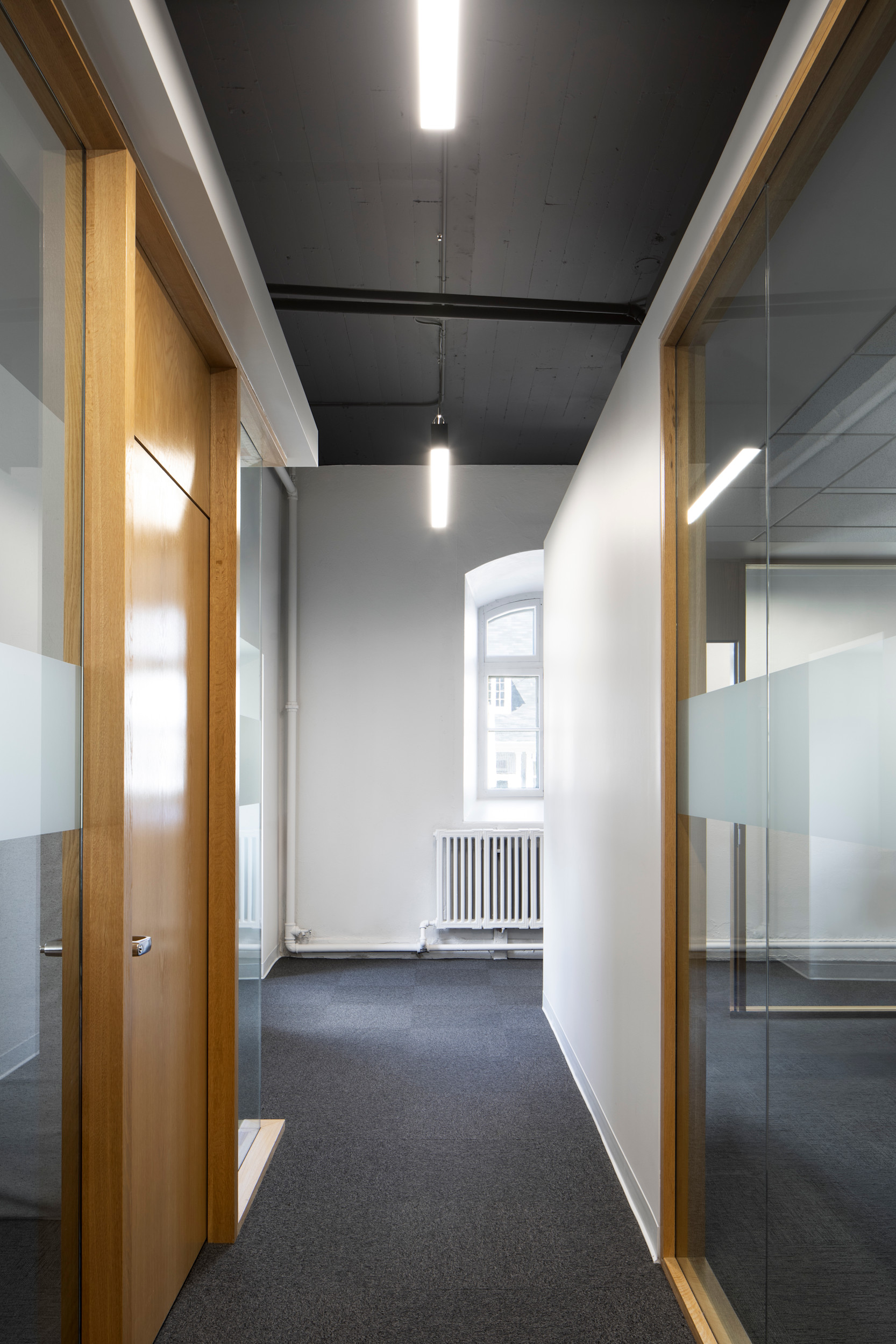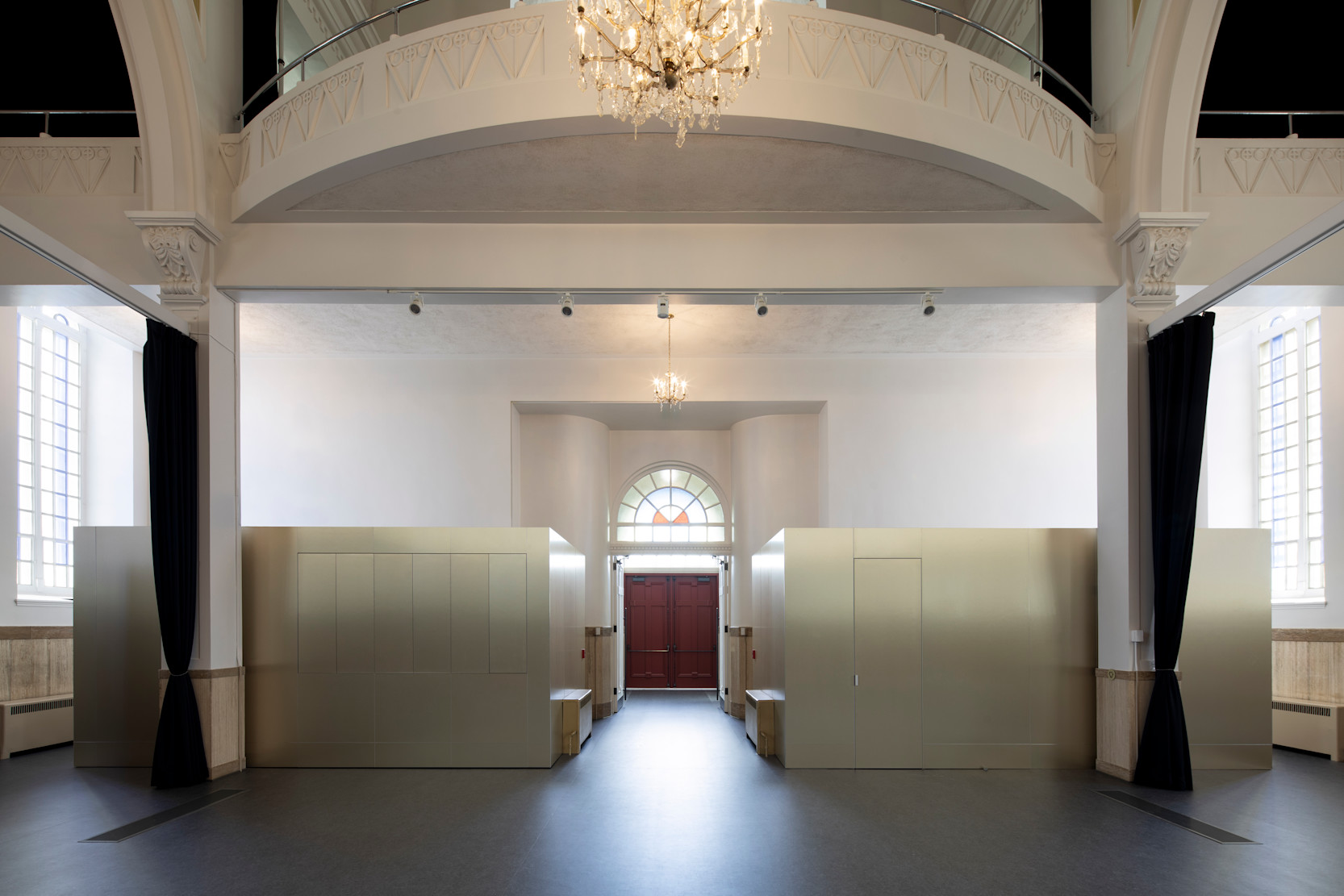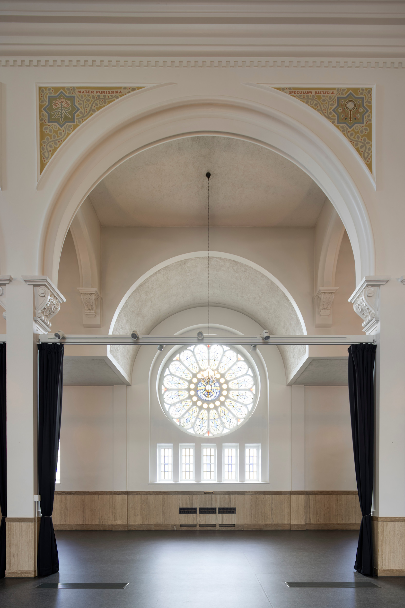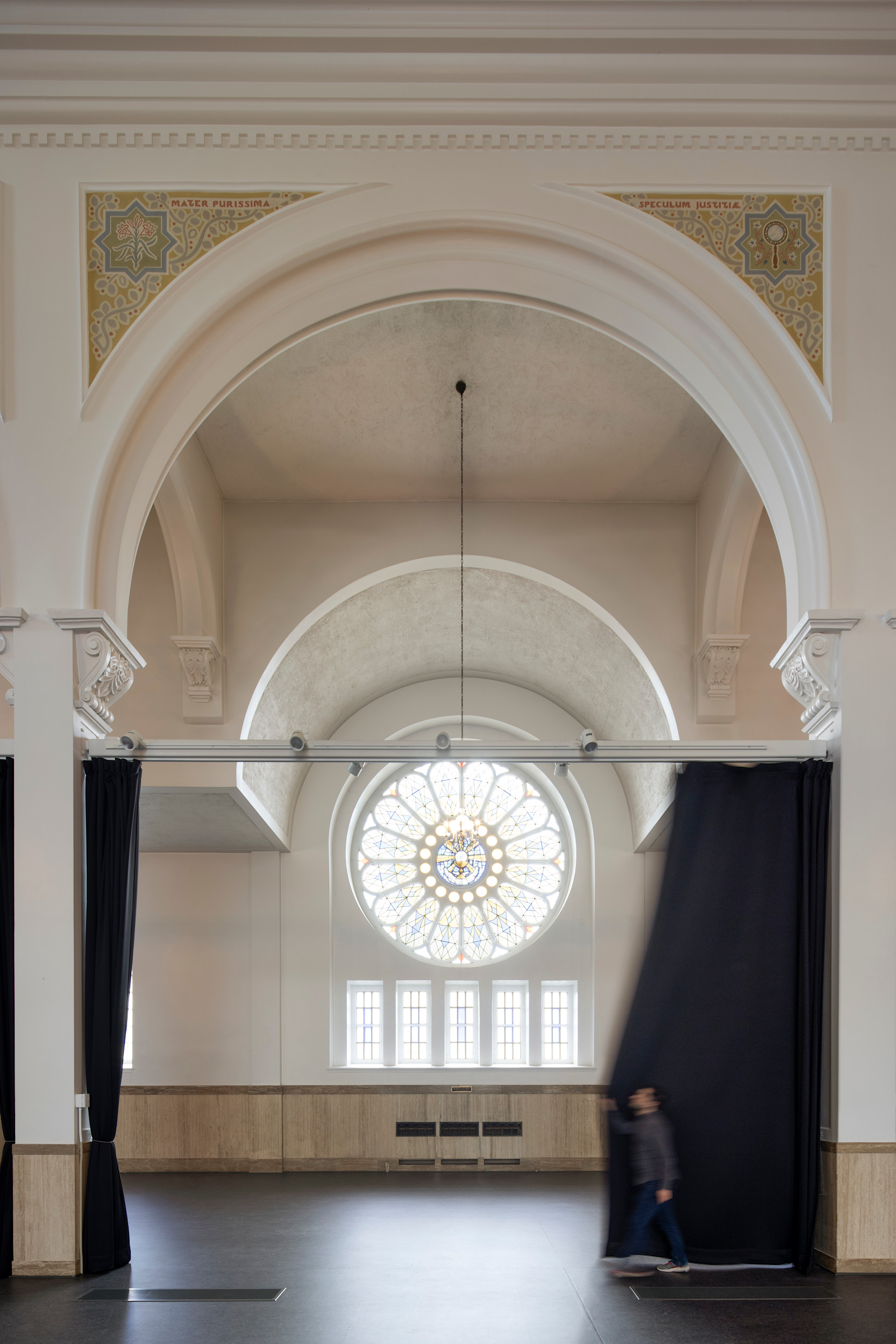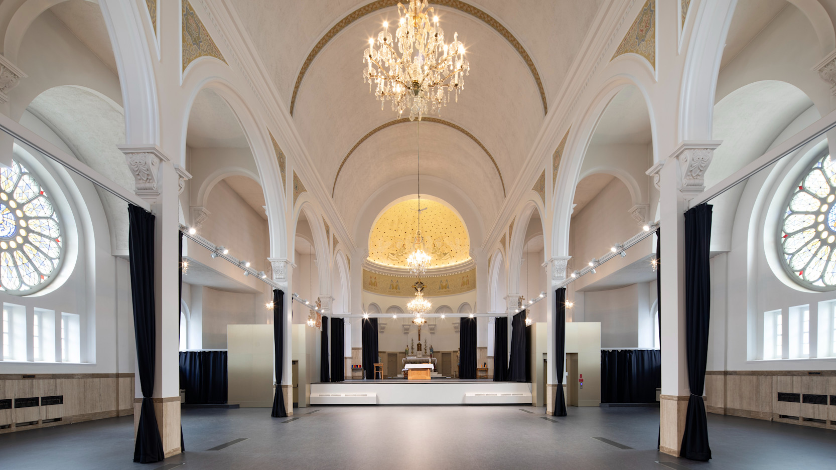 À chaque occasion, le projet mise sur la flexibilité et la réversibilité des interventions. Ainsi, un système de rideaux modulables permet d’adapter la salle multifonctionnelle à divers usages, tandis qu’un concept de boîtes, parfois vitrées, préserve les parois existantes tout en favorisant l’entrée de lumière naturelle ; une approche qui préserve l’esprit du lieu.